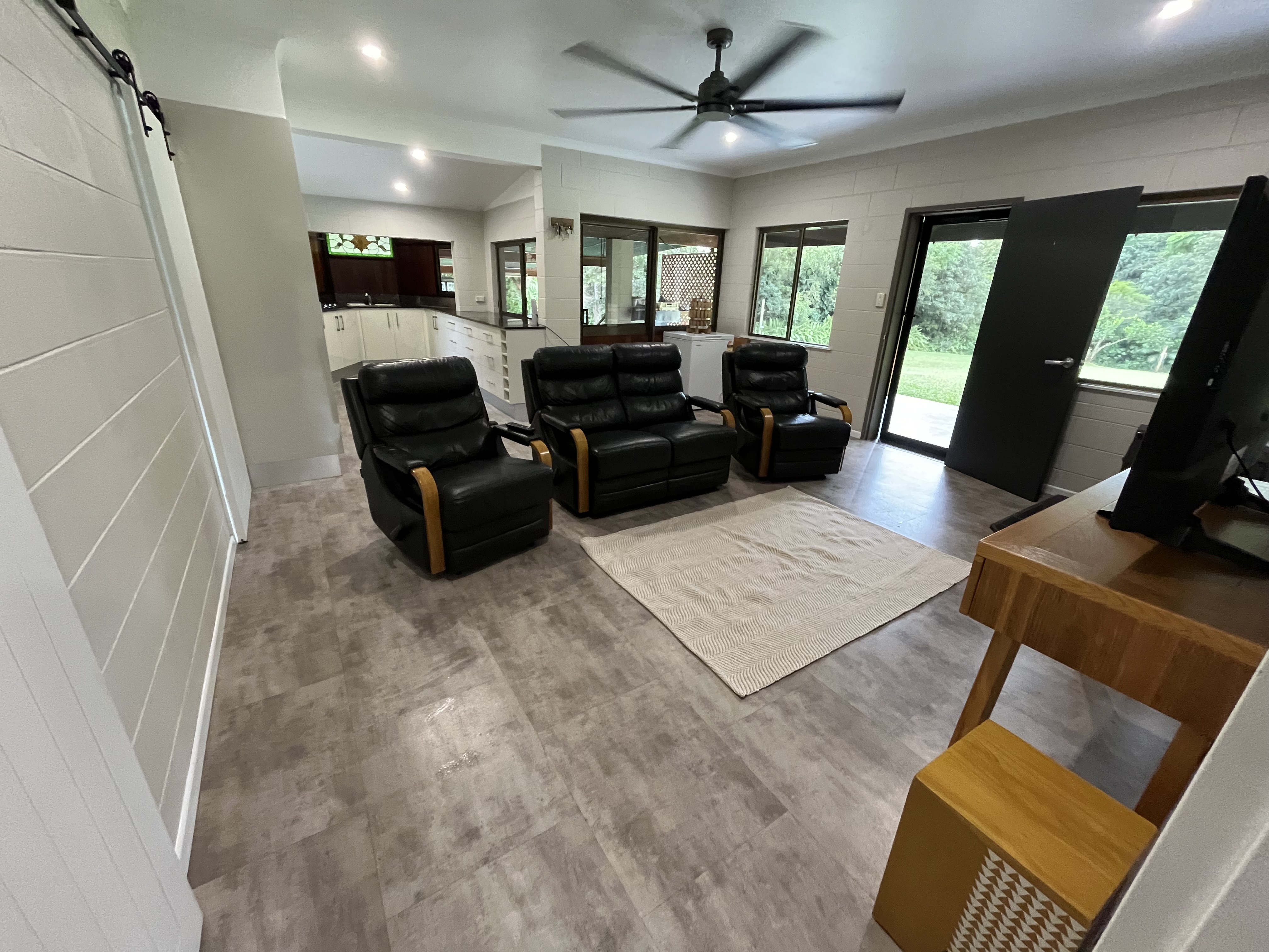 Walking distance from the beautiful Lake Eacham, this property is sure to impress those looking for complete privacy and tranquility. Offering 3 bedrooms and 2 bathrooms in the main house, with a separate granny flat plus adjoining studio/extra bedroom. This house offers so much flexibility and could be used for home-based business, Airbnb or home gym. This house is designed for outdoor living with 3 decks and plenty of undercover areas to entertain. For those interested in the idea of a small hobby farm or self sufficiency, this property boasts 2 fenced yards with animal shelters, as well as 2 vegetable patches and over 30 varieties of fruit trees. With a bore plus 2 rainwater tanks you have all your clean water needs taken care of. This property is worth an inspection today!